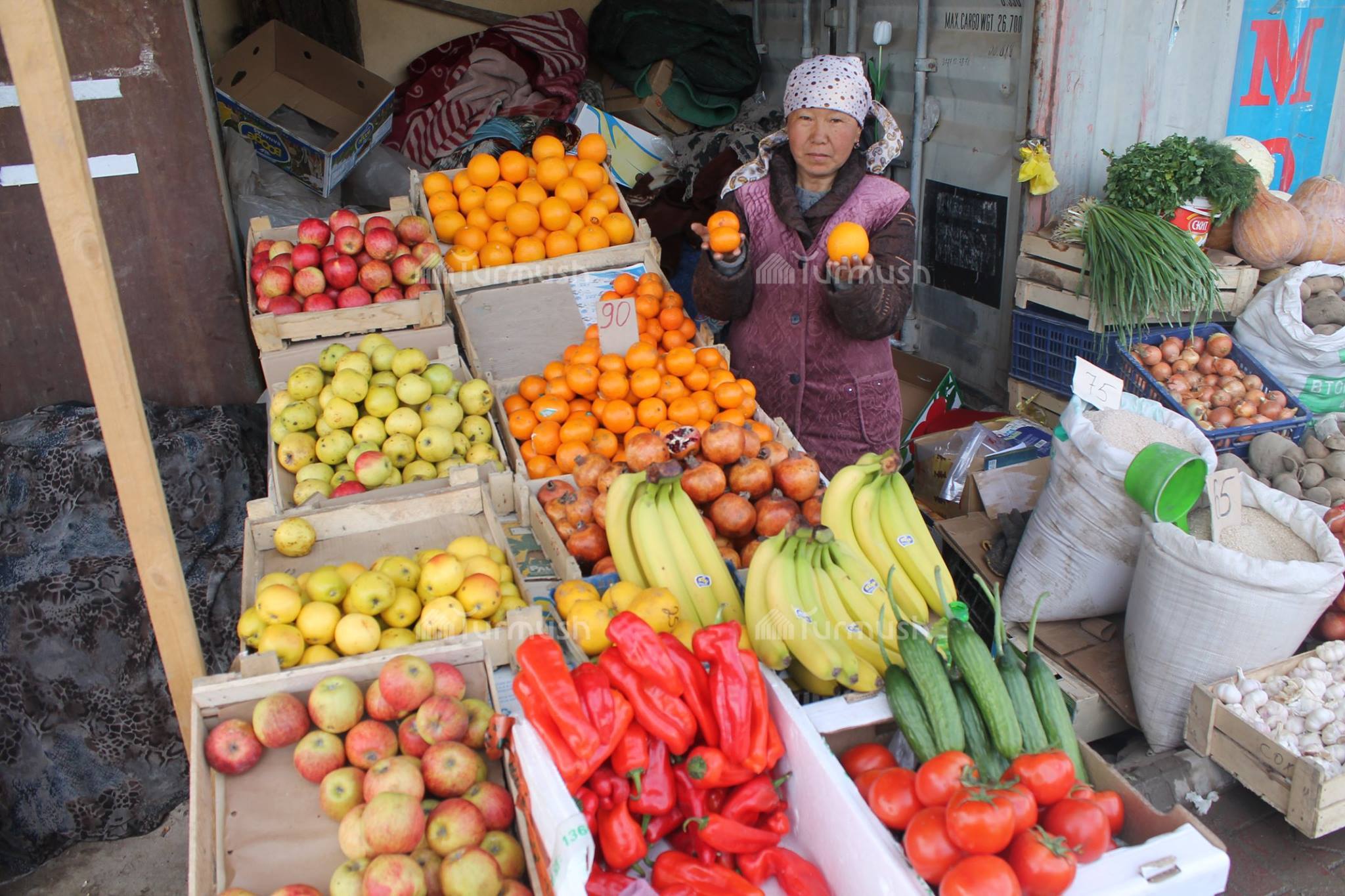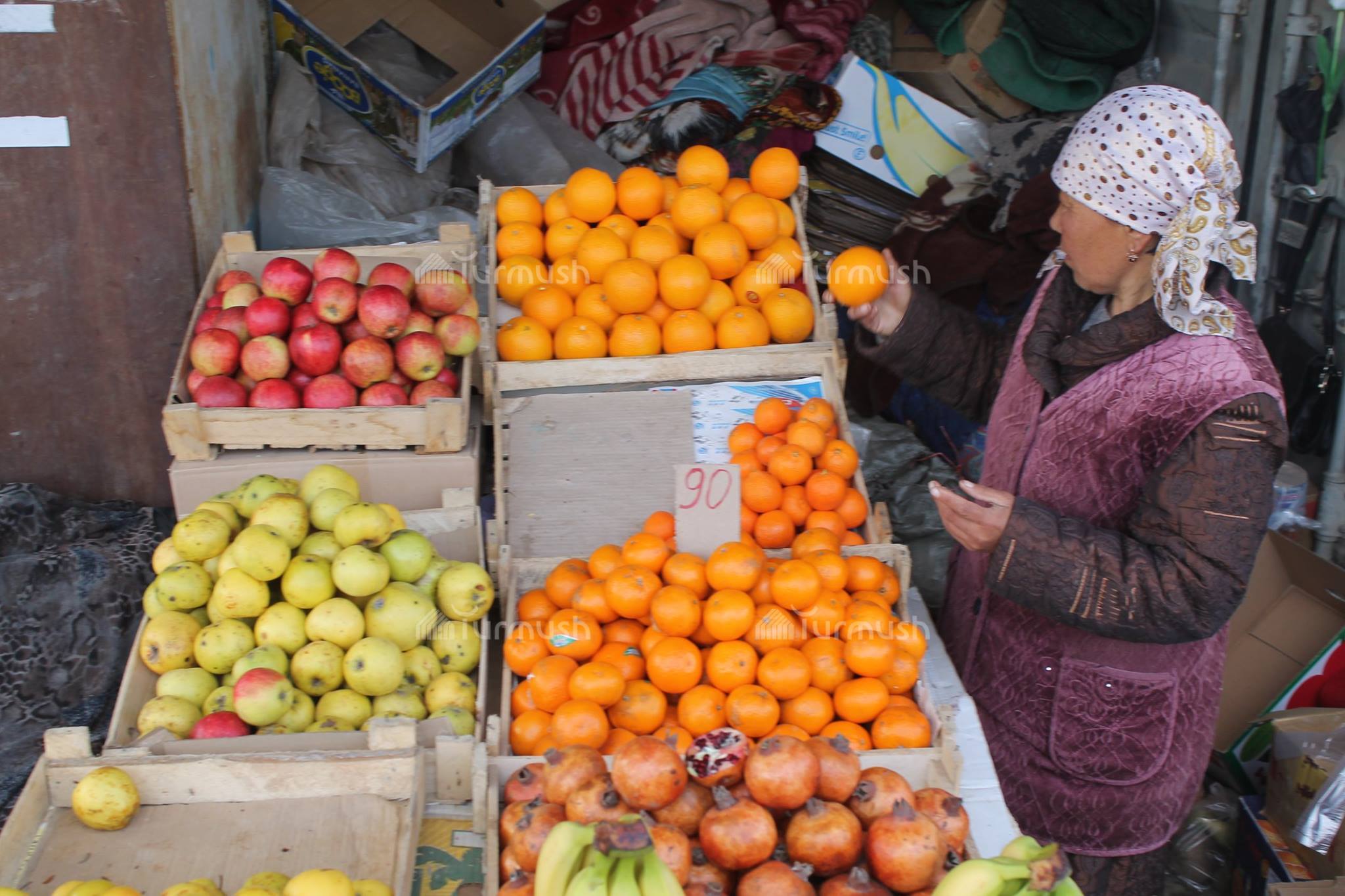 Айыл турмушу: Токтогулдук Г.Сасиева бир нече жылдан бери жемиш сатып, балдарын окутууда (фото)