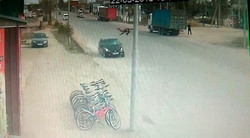 Уруксат берилбеген жерден өткөн: Токтогулда унаа сүзгөн жөө жүргүнчү бир нече метрге ыргып кетти